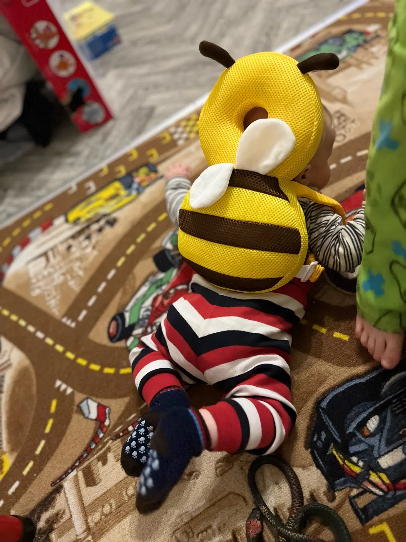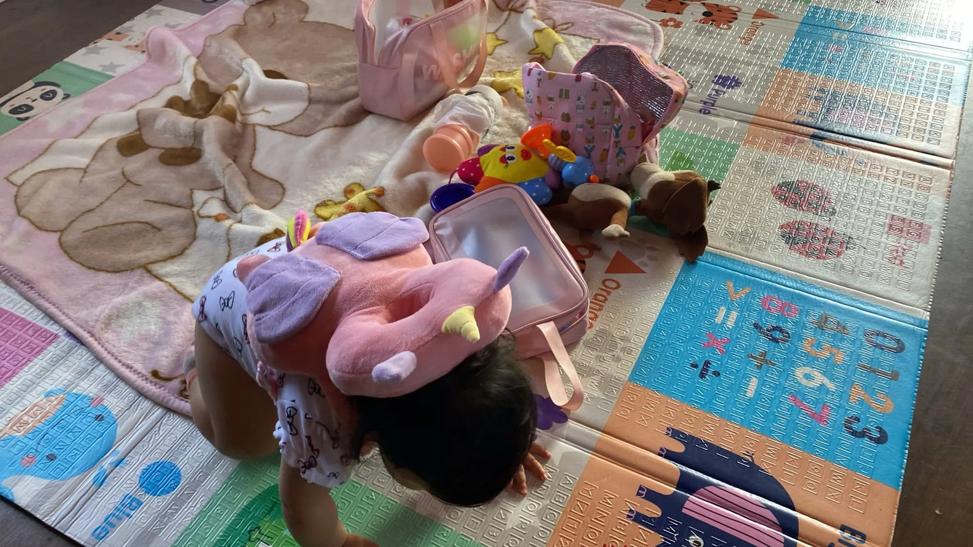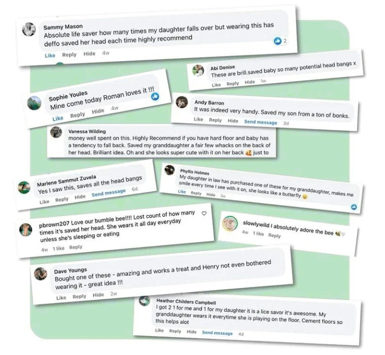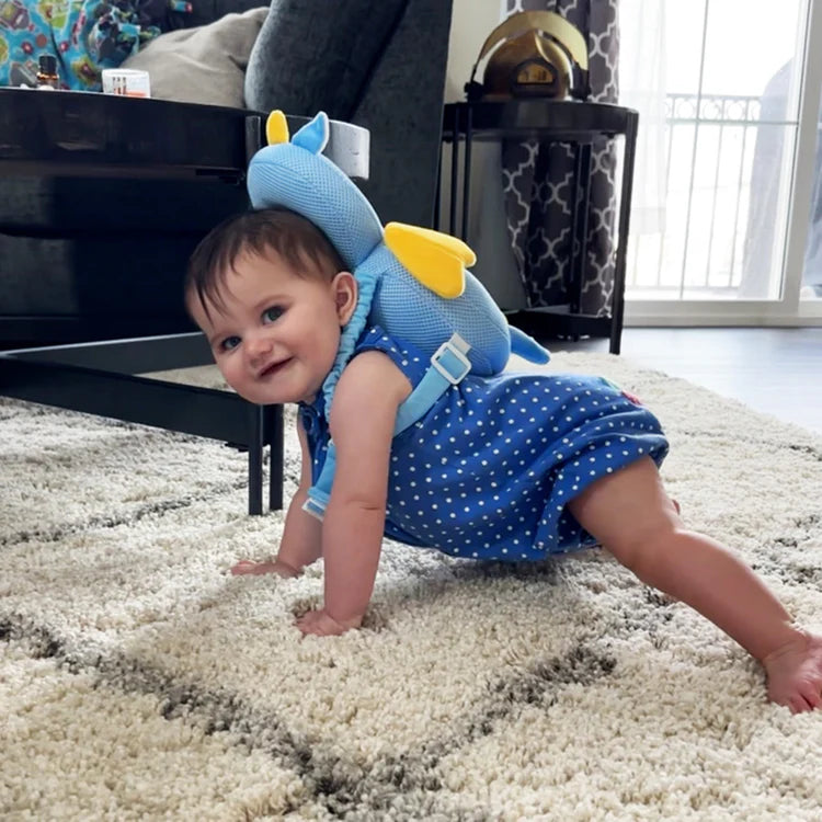 While babies instinctively use their arms to shield their faces in a fall, the back of their head lacks protection, especially on hard surfaces. This steps in to fill that gap!
